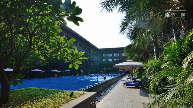 哈哈最爱泳池,很喜欢这个大泳池,水没有太深,我也敢在里面游,泳池三面环绕着客房,房间对着泳池,也是美丽的景色哦。