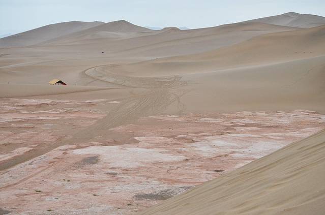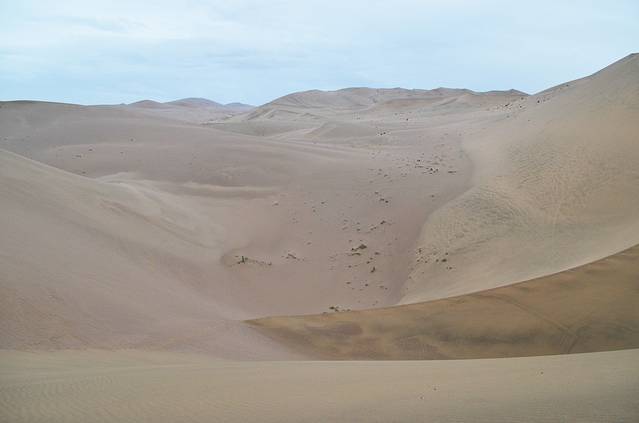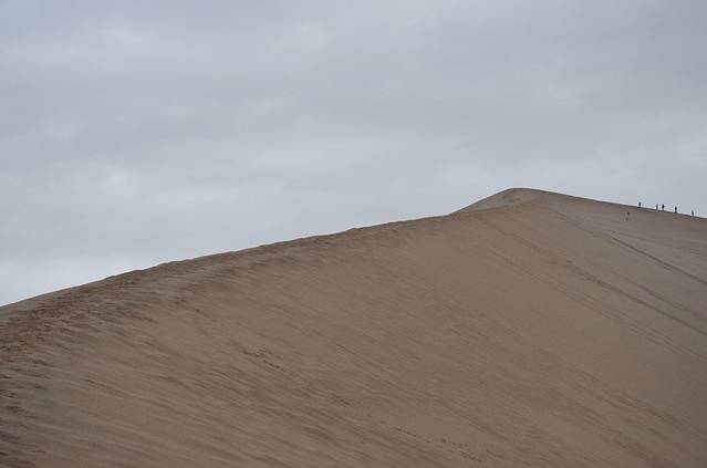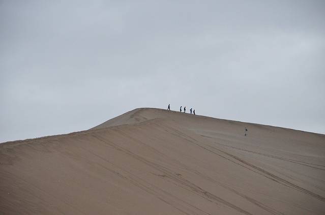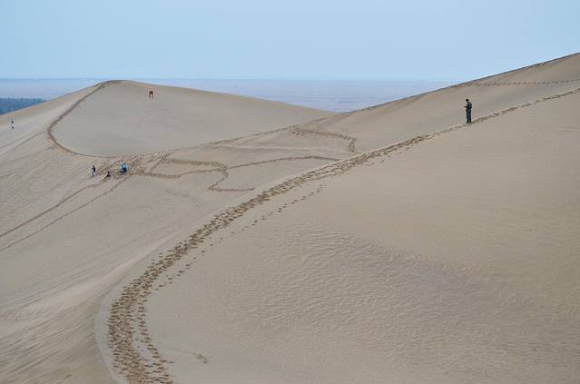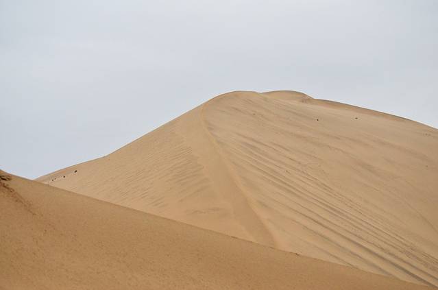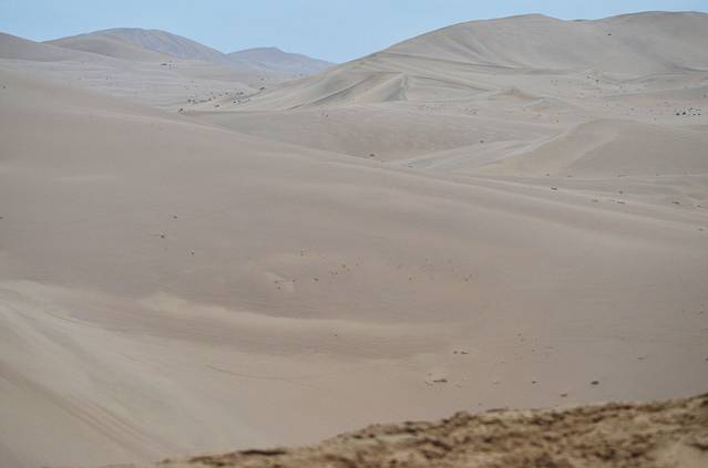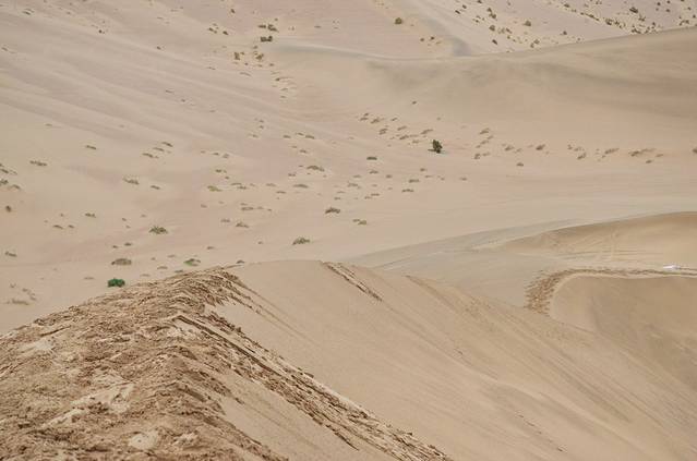 要爬沙丘相比平地要花双倍的力气,我们沿着之前爬过的脚印一步步上到山顶,可以看到行径大多都是沿着沙丘尖峰上。