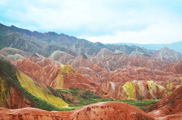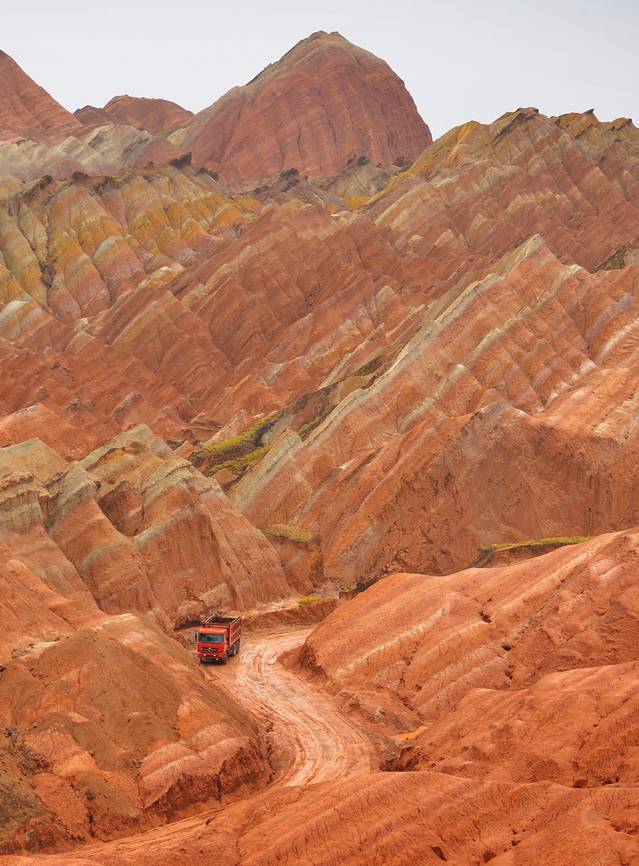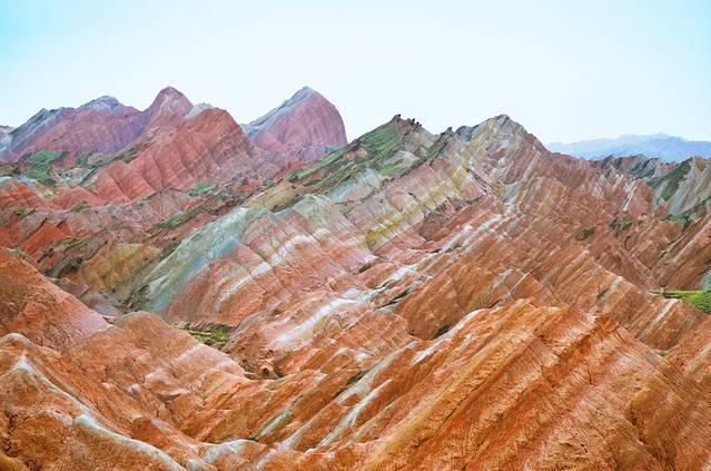 除了七彩丹霞之外,张掖还有冰沟丹霞,冰沟丹霞与七彩丹霞类似,但也是非常不错的一处景点。冰沟丹霞有着崖壁、石墙、石柱、尖峰、丘陵等地貌形态,尖峭挺拔,连绵不断,气势宏伟,但是在距离上相比七彩丹霞更加远。