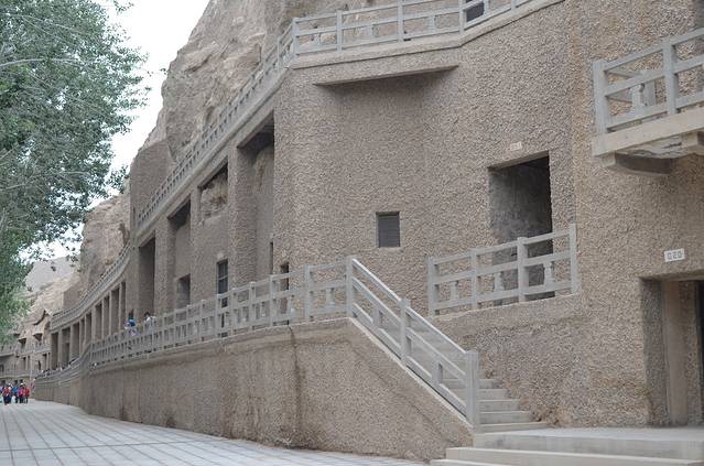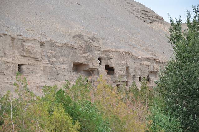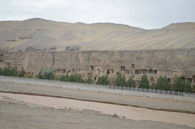 一路上就能看到在悬壁上凿满了一个个小洞。这应该就是未被保护的石窟了吧。