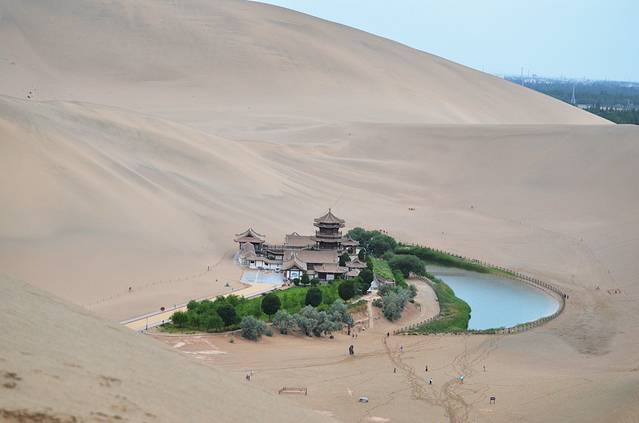 月牙泉的泉水犹如一轮新月,这也是该地名字的由来。月牙泉自汉朝起就成为了“敦煌八景”之一,1994年列入国家级风景名胜区,此外还有“沙漠第一泉”之称。