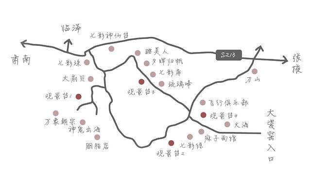 由于时间关系,我们只去了七彩丹霞。从张掖市区到丹霞大概在四十公里,丹霞东入口比较近,大概为三十多公里,一般去临泽西入口的人比较多,发车也比较快,所以建议大家可以去西入口。我们由于不仅要去丹霞,还要去祁连山,且人数较多,所以就在张掖包了一辆车,有司机全程同行。丹霞地质公园一共有4个观景台,基本上在观景台的边上就会有大巴等着。