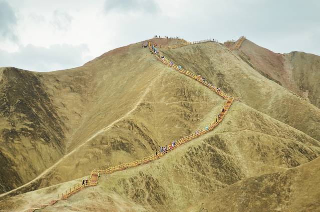 我们去的时候正好下雨,如果是晴天的话,那色彩将会更加艳丽。整个景点和雅丹地质公园类似,也是需要乘坐巴士的,其中有几个观景台很大,需要走一段时间。当然也要注意安全哦,这里的高差还是蛮大的。