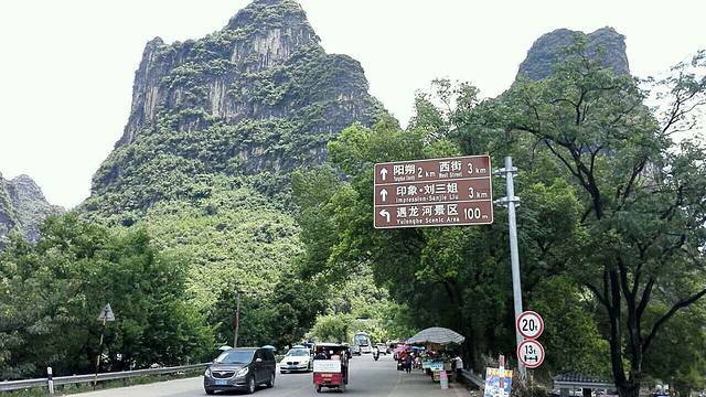 遇龙河漂流终点在万景码头,上岸后第一件事情便是寻找回西街的自行车了。岸边很多的租车点,回阳朔还要25-30元一辆,抱着“尽量穷游”的“理想”,我们决定走走这6、7公里。其实从工农桥开始的这段返程,是非常适合慢慢骑行或是步行的,沿途便是著名的“十里画廊”,而“蝴蝶泉”、“图腾古道”等等景点镶嵌其中,更能给你的返程增色不少,不会有丝毫单调无聊之感。