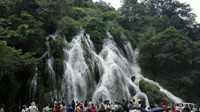 7点20左右,大巴从贵阳出发,接近中午11点半才到达小七孔景区门口,直接在一家酒店吃中餐。好家伙,吃饭场面那叫一个人山人海啊!几家旅行社的几百号人全堆在里面,走廊都塞得满满当当,导游在前头喊的什么压根一个字都没听清,反正我们被挤得是香汗淋漓就是了,我们的眼眶不禁有些湿润了:还是那种熟悉的味道,小七孔看不太成了。。。