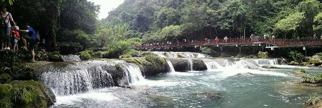 接下来的荔波小七孔和西江之行我们直接在当地参了一个散客团,两天一晚。今天先走的小七孔,完了大巴去住西江,第二天下午回凯里就计划脱团自由行了。为什么不自己走呢?一是因为两个目的地相隔两百多公里,而小七孔离贵阳只远不近,大体呈现大三角形的形状,若是自己坐车只怕更加麻烦复杂;二是7.8月份当真是贵州的旅游旺季,四面八方类似我们这些的人“援贵”热情高涨,两眼一抹黑地过去真是比较可怕的事情,对于这种热门景点我都有种寸步难行的感觉了,呵呵,所以,干脆点好了。