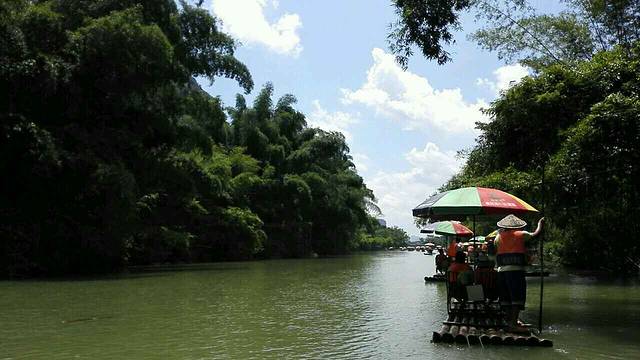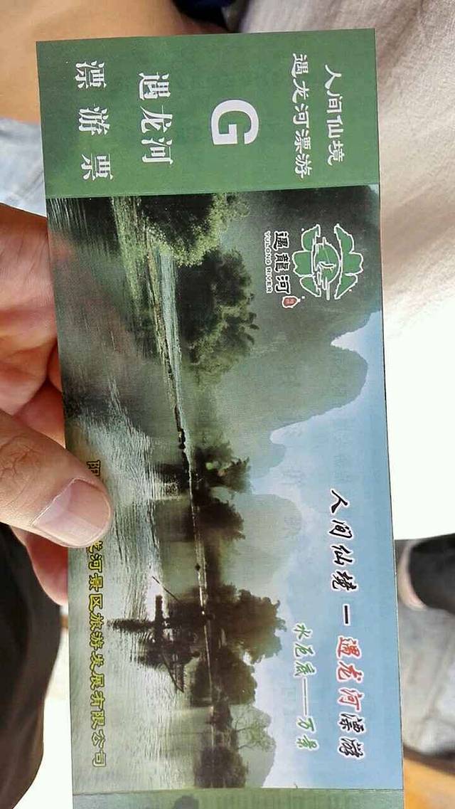 遇龙河有“小漓江”之称,漂流分上中下三段。对于自由行而言,遇龙河上段(金龙桥到旧县村)是最好的选择,一开始也就是这么规划的。很不巧的是,这几天上游在修水坝什么的,但漂呢是一定要漂滴,无奈之下,我们选择了下段漂(水厄底到万景码头),网上180订的两人筏,约摸40-50分钟的样子。感觉不贵,比起乌镇之类的小船60元的性价比要高很多吧。