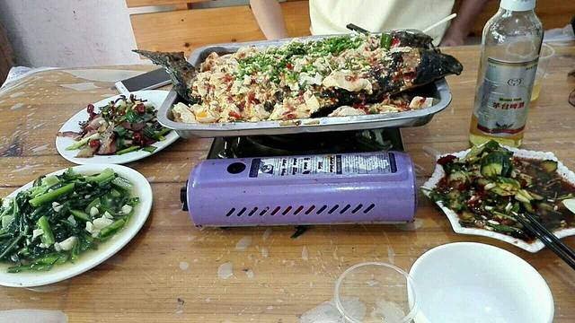 有草鱼和“江团”两种鱼,选的“江团”,现杀现烤,这不叕是鲶鱼嘛!。。。话说我们那边很少吃河鱼,遑论是鲶鱼了,在阳朔吃了两天,镇远又可以吃两天,唯一的区别在于称呼吧:我们那边叫鲶鱼,阳朔叫的“剑骨鱼”,到了镇远又变成了“江团”。。。这酸爽,回去后很长一段时间不能再碰了,哈哈。