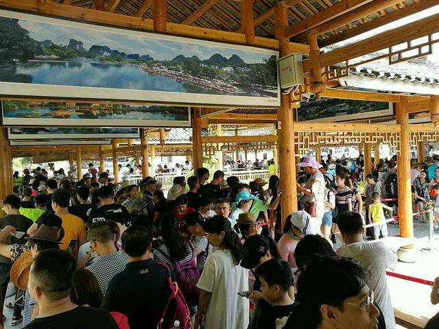 但。。但好多人哪!下面的排队图,三条连接廊3-4只队伍,而且是没有回头的。。。现在10点10分左右,我们身边的一家人早上8点半就在排队了,目测半小时之内还上不了筏。旺同志说自从世博会后就再没排过那么长的队伍了,不过,我们有时间不是?呵呵。(特地避开周末来的阳朔,人还是多得不要不要的)
