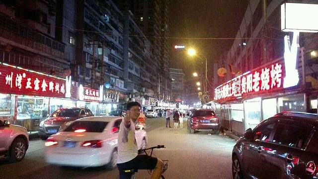 夜宵后找两台ofo骑回去,习习微风吹来,并没有在阳朔骑车那般闷热、大汗淋漓的感觉,时间尚早,两人便决定骑到青云路夜市看看。过去了才知道青云路夜市主要集中在东面,西边就相当冷清了(我们住在西边),以后过来的童鞋要注意一下。