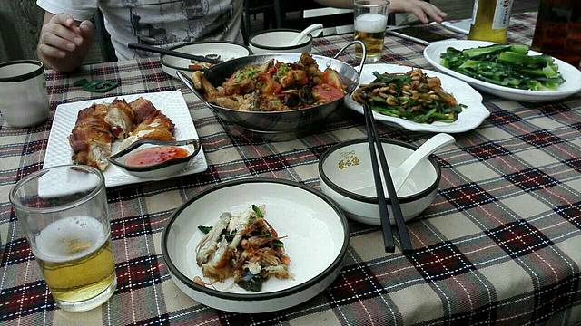 第一晚吃的,看了很多信息之后没有选择满街的大师傅之类的啤酒鱼,转战117#漓江鱼馆。剑骨鱼红烧味道很赞,田螺酿其实没吃出什么田螺肉味,满口的梅干菜和猪肉味。不过,68元团购剑骨鱼啤酒鱼,+田螺酿+蔬菜小炒,你得要求多高呢?哈哈,打90分。后加了个漓江虾,个头没比我们那边虾米大,哈哈,料新鲜味道尚可。这家店不太好找哦。