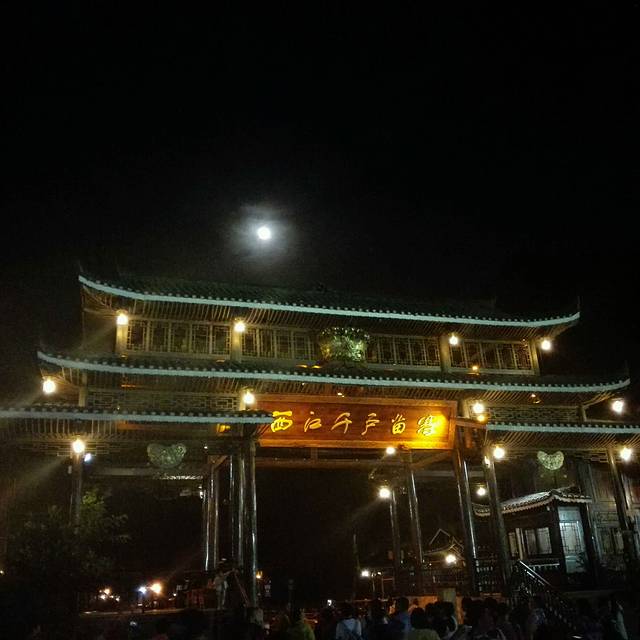 观景台和想象的不一样,以为是个阁楼什么的,其实是个小平台,习习凉风之下,我们很乐意在上面多呆些时间。总算是见识到了闻名遐迩的西江千户苗寨夜景,手机拍不出很漂亮的照片,却能拍出很放松的心情,顿有不虚此行之感。