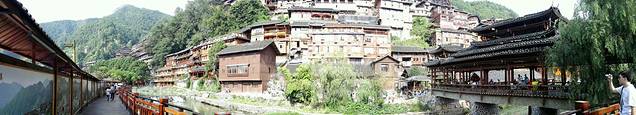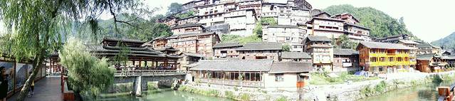 舞阳河真的很漂亮,河水谈不上清澈见底,但还是挺水绿的那种。以舞阳河为依托,酒吧、排挡、小吃、书店,但凡你能想到的都能在河畔两岸见着,石屏山和青龙洞景区也在舞阳河边上。镇远的路都是带花纹的石条路,这点很花心思,石条磨得锃亮,许是来来往往的人流真是挺多的,但并没有阳朔西街那种拥挤的感觉,若是觉得人多了,转几个小巷口又是一片清凉。