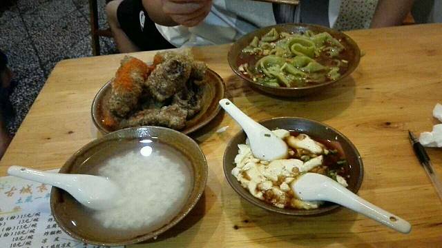 饭点时间,在祝圣桥附近找了家“袁妹豆腐”,店里生意很好,翻台率很高,两个小妹有些忙不过来。推荐几样小吃:绿豆锅巴面对旺同志来说有点辣,我是觉着挺好的。对我们这样来自沿海的人来说,吃这种面不太适合一根面吸到底地吃,可以夹起来放到嘴里,并不觉得呛了;炸蕨粑有点像我们那边的炸面筋,可放糖或胡椒粉,建议胡椒粉;豆花必吃了,可惜豆香差一点点;冰的甜米酒不错,酒量好不好都可以喝一碗,冰爽得很。