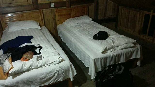 11点进入景区,夜深了不必排过长的队伍,可以安静走在主街欣赏沿途建筑风情。入住的旅馆处在富裕7(富裕?)的半山腰上,原先说的住4-6人间为主,幸运的我们拿到了一个“标准间”,虽然是阁楼(空调也是不需要的),但有点小满意,不错的老赵,哈哈。