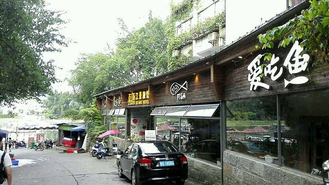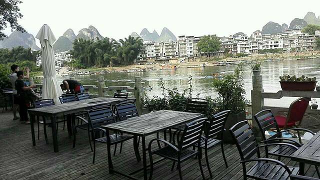 因为晚上准备去看“印象刘三姐”,而且考虑到两个人都喜欢装装的意境,选择了“爱吃鱼”江边的这个分店。158套餐吃到撑,加上临近漓江的好位置,很赞有没有?!强烈推荐了!阳朔夏天吃饭有点晚,6点半过去还是江边的第一桌,除了稍稍有点闷热,其他的都完美了,呵呵。