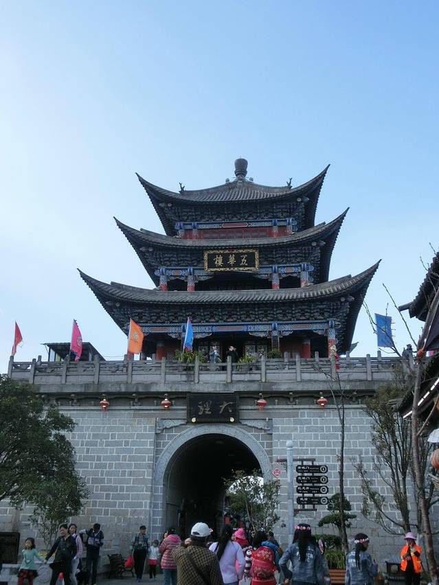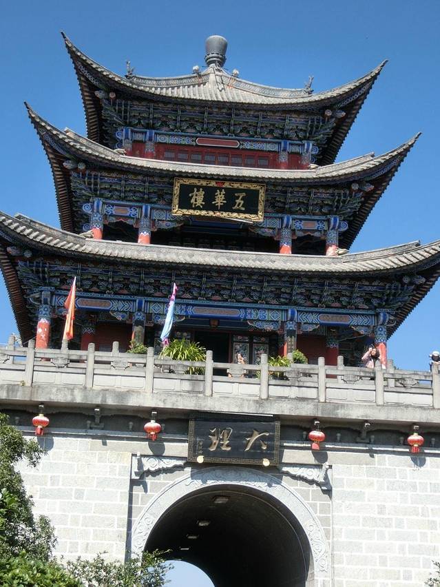 放下行李休息了一下后,我们坐三轮车到大理古城游玩,10/人被我们讲价到10/3人,路上遇到了老赵,于是我们就4人结伴同行了。在车上还有一位白族的阿姨,一路上我们和她聊天,也问了一下大理有什么地道的正宗小吃之类的,我们还学了两句白族话呢。“你好”=”ni qiu(第一声)“,”谢谢“=ha wa li.