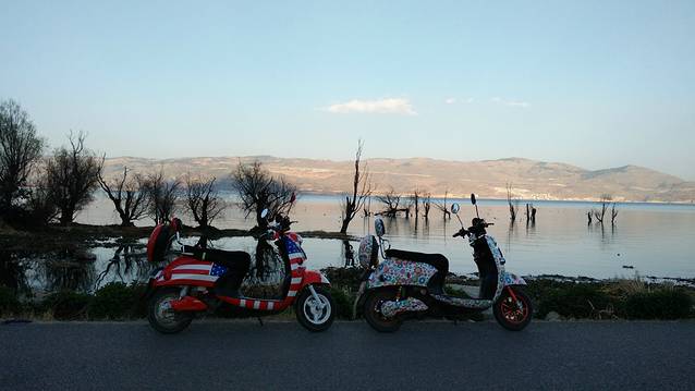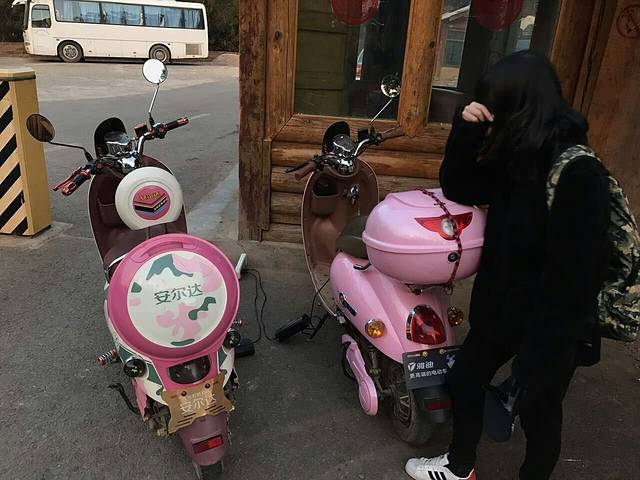 电摩是在白骆驼前面租的,我们讲价到40/台。因为我们住在白骆驼,所以老板就没有收我们的身份证作抵押,就收了200块押金。我们把它们取名为“花花”和“小条纹”~