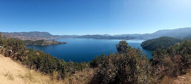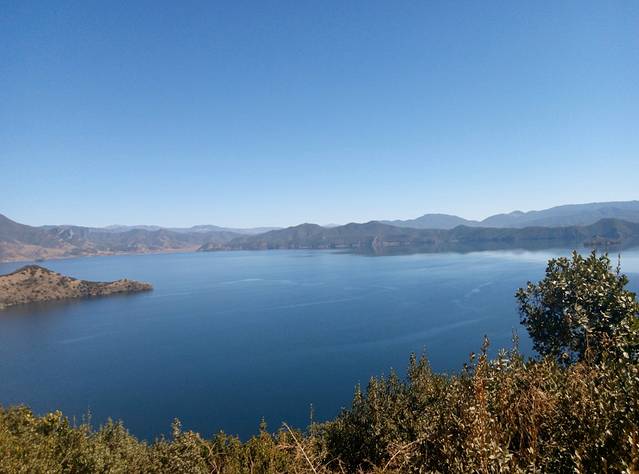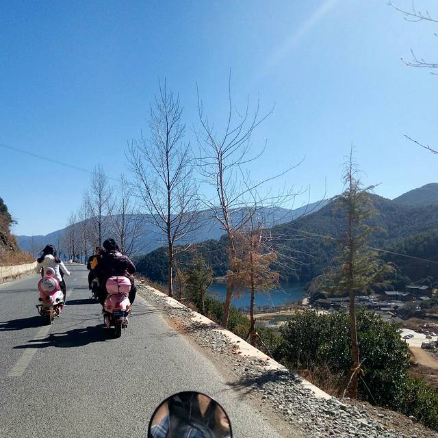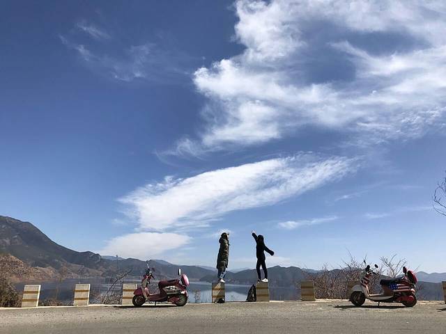 骑电摩出发,我们到了里格观景台,一路上远眺泸沽湖波光粼粼碧蓝碧蓝的真的很美。路上阳光灿烂暖暖的,但一到被山背阴影遮挡的地方就立刻感觉到阴凉阴凉的。
