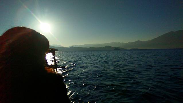 第二天我们一行人打算早起游船看日出,结果太阳都出来了还是找不到说带我们游船的老板,我们只能另外付钱游船了。