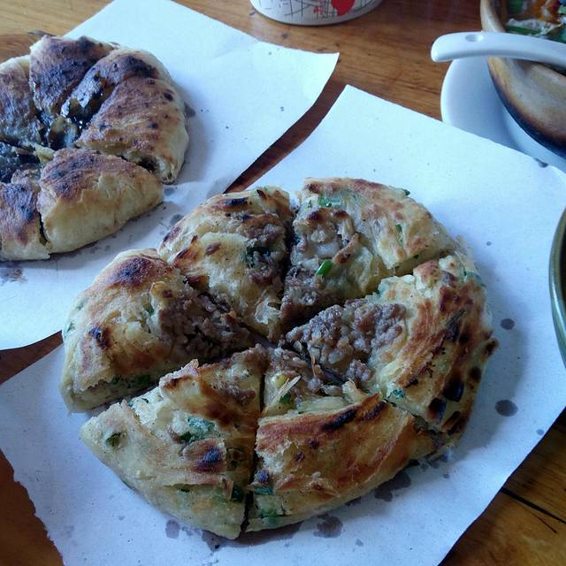 另外更喜欢的是喜洲耙耙。它分咸甜两种,咸的是中间夹着肉,甜的是夹玫瑰糖。我比较喜欢甜的,小玲就比较喜欢咸的。如果不太习惯吃甜食的人可能会觉得甜耙耙偏甜。