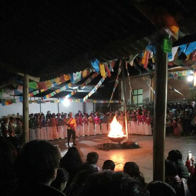 吃到一半便被告知篝火晚会准备开始了,我们就赶紧随便扒多几口就过去篝火晚会了。据说大落水的篝火晚会是外包给外面的表演人员表演的,里格这边的篝火晚会是自己摩梭族族人每家派出一人轮流表演的。一进去我们就看到了十多位阿哥阿妹在篝火旁暖身。后来小玲还兴冲冲下去一起跳舞,我和老赵在隔壁给她录视频。接下来的是对歌环节,我和小玲想,来都来了,不上去对下歌就可惜了,然后就兴冲冲举手上去对歌唱了《海阔天空》。老赵就在下面帮我们录视频纪念哈哈哈哈。阿哥阿妹们还有一个奖励,就是一堆阿哥冲出来吧我们抛到空中,唱完一转头十几个阿哥冲出来把我吓到转头就跑,结果还是被抓回去丢上天了,那个感觉是真的很刺激。下来之后老赵和我说,就我是被抛得比其他人都高了,我感觉自己都上天了真是。篝火晚会结束后还听到了有人在唱《喜欢你》。