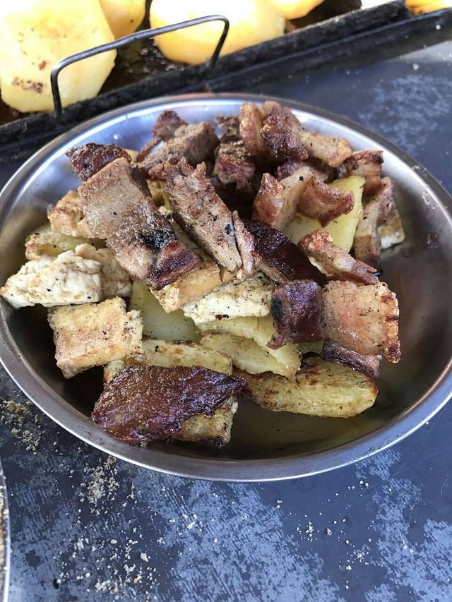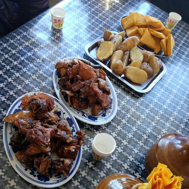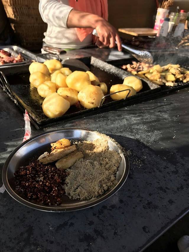 下午茶有酥油茶、咣当酒、酥理玛酒、烤鸡两大盘、土豆、耙耙等。其中咣当酒也被称为走婚酒,后劲很足是男性喝的。而酥理玛酒则是给女性喝的,较为清淡。这里的土豆真的超级好吃!淀粉非常足,烤鸡也是十分够味,以至于大半年过去我仍在怀念那顿下午茶。期间两位司机师傅还在唱歌助兴十分带劲。