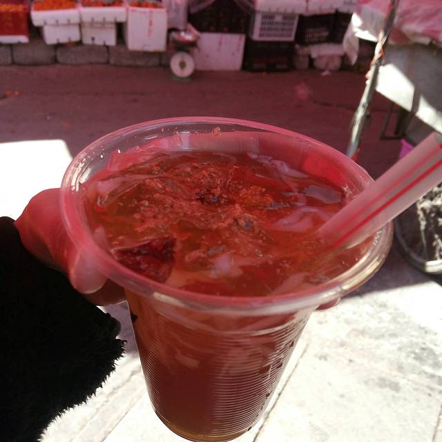 回去的路上小玲到泸沽湖边装了瓶水,在车上遇到了青旅的老板回丽江。他告诉我如果买苹果的话可以到忠义市场看看,也可以试试特色的小吃“凉宵”。到了丽江后还发现有段时间空闲,我们就和七星街街霸一起逛逛忠义市场吃凉宵,它有点像凉粉,加上糖水,还是会觉得有点甜,5块一杯也不会太贵。但到最后还是找不到我想买的苹果。