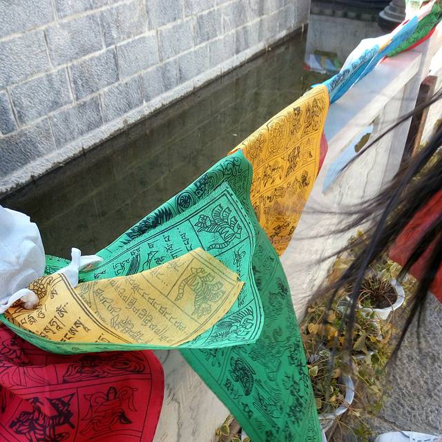 隔壁有一条路可以通往泸沽湖,在这条路上会发现很多佛教用于祈福的建筑,据说是要双手合十顺时针走三圈后把石头放到上面便可许愿。