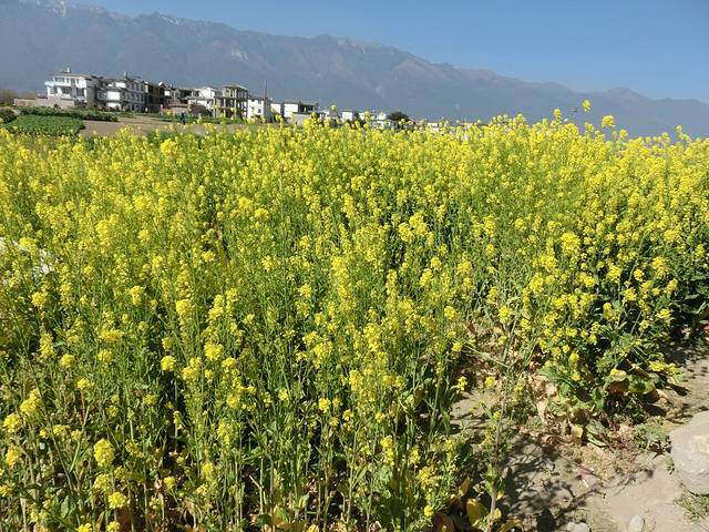 开到了洱海旁,我们看到了路边有一小片油菜花开花了,我和小玲就兴冲冲停车去拍照了,于是悲剧就这么发生了——我的相机跌倒了土地上进灰了,刚开始最期待的行程相机稳稳报废;而且老赵和莉莉的电摩发生了意外翻下了路边倒后镜烂了。