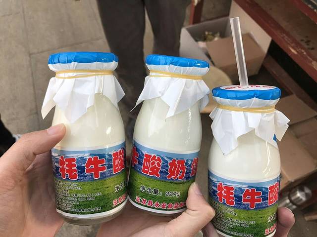 我们在草海旁停车打算吃点烧烤,这趟是我们吃得最开心的一顿了!终于吃上了心心念的烧烤,而且这里的猪肉牛肉都是店主自家养带出来的,特别有肉味。土豆也是特别的好吃。而且他们还有配一个黄豆花生粉,粘烧烤特别好吃,我们三个人吃了老板娘几大勺黄豆粉还一直说好吃,老板娘都反问我们真的有那么好吃吗??哈哈哈哈,然后我们三个人还一直帮老板娘拉客来吃烧烤。老板娘还给我们推荐了冰粉,冰冰凉凉有点甜还是不错的。临走的时候我们还买了牦牛酸奶,原价10块讲价到了8块,小玲讲价的时候还讲得特别鬼祟。牦牛酸奶比起其他酸奶会水一点点酸一点点,正好合我胃口,回到青旅时又买了一瓶喝。期间小玲的酸奶放在电摩上抖了一抖,结果碎了,还懊悔了好久呢。