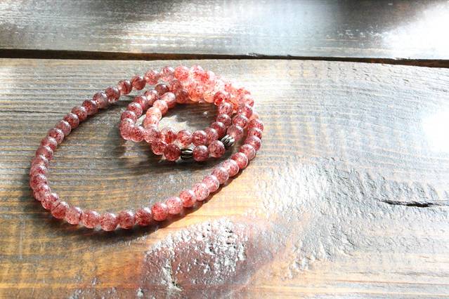 给陪伴一路的草莓晶手串自私地来个认证照~