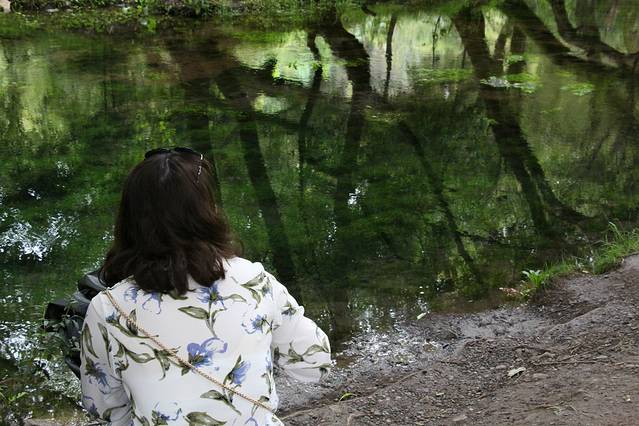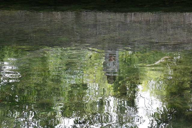水里面有铜离子,所以会呈现漂亮的蓝色。越往前走,颜色越深