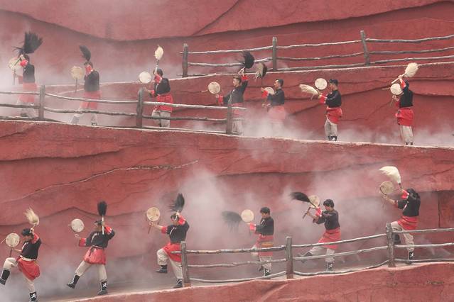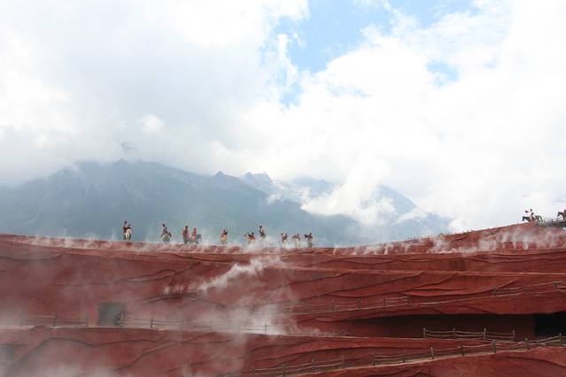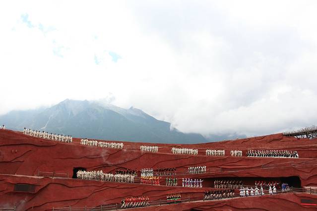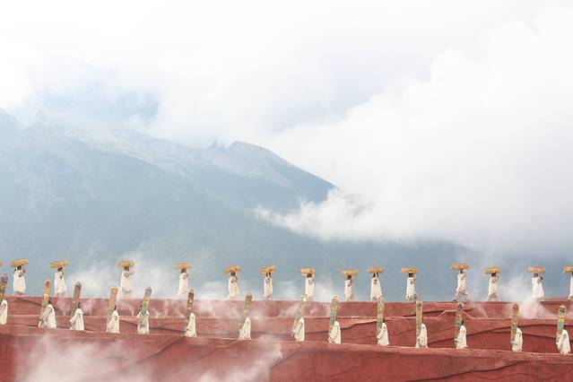 演出剧场位于海拔3050米世上最高的实景演出场地——玉龙雪山景区甘海子,是目前唯一一部在白天进行的实景演出。有老谋子导演的风范!