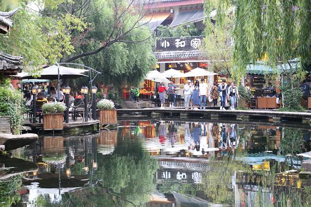 初到束河的时候,还有些不习惯,束河的面积小,人更少,只有潺潺流水的声音,可以走的慢一点,再慢一点