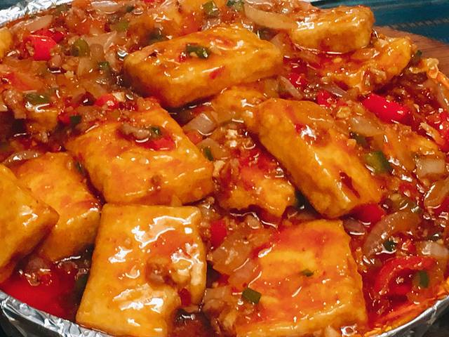 招牌秘制雪山鱼,好吃!超级好吃!鱼肉鲜嫩,没有小刺,尤其铺在鱼肉下面的泡菜,酸甜口的特别好吃!这是我觉得6天里最好吃的菜!
