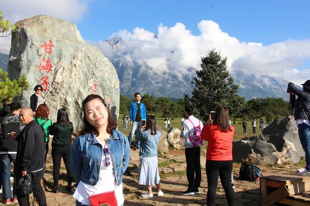 玉龙雪山上一个由冰川湖干枯后形成的天然高山草甸,在旅游开发前是周围彝族和藏族放牧的天然草场。。师傅会留10分钟左右给大家下车拍照。