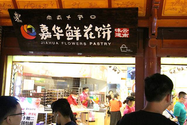答案是要的吧~大水车算是游客必游,人流量大的地方,嘉华鲜花饼的现烤也更多了呢~