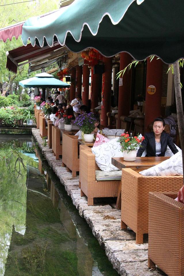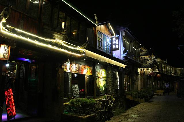 束河有名的飞花触水酒吧一条街,酒吧 餐吧主要就集中在这里