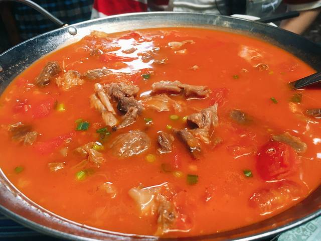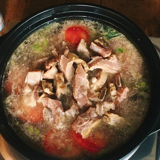 吃完才发现,老板都没有给我们点菜,就直接端了腊排骨上来,分量我们2个人刚好,锅底有一些番茄、芹菜、豆芽的配菜,不够还可以另点,就像火锅一样。关键是真实惠,80元!