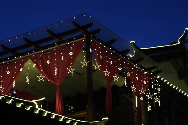 为了一探古城灯火,竟然还是找到了一个独家的观景台,大家搜索“三只猫客栈”就能找到,一家转让的客栈前还有桌椅可以休息,绝佳的观景台。