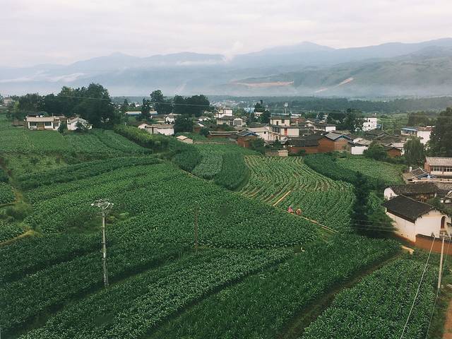 清晨的天,虽然并不晴朗,但远山依稀可见。夏日的绿油油农田告诉你,快到了,可以放松神经了~这个时候火车上开始播放五月天的歌曲合集,嗯,很应景。