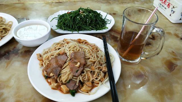 当地的驴肉黄面,味道一般般,凉拌香葱30一盘,这边的吃饭真的很贵~话说杏皮水是真的好喝~