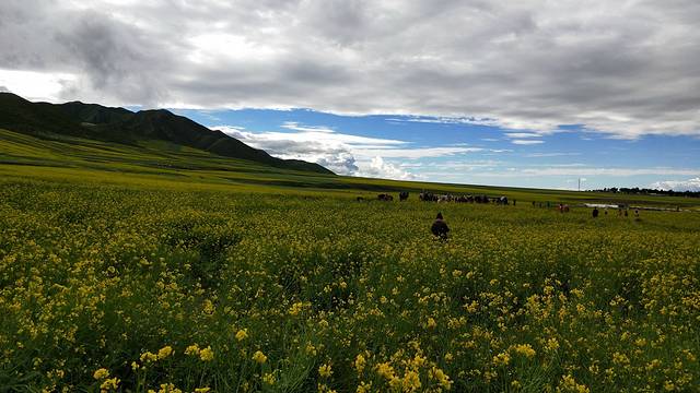 40公里后到达扁都口,许是上天要弥补我们万亩油菜花的遗憾,当扁都口出现在我眼前的时候,一切都不一样了,由此进入甘肃境内,天空裂分裂出了晴朗 大蓝,然后此行的第一幅美景:成片的油菜花田出现了,我们震惊后就是各种疯狂的拍照,拍照~(此处省略一万字,因为当晚住宿时,发现在这里发生了了不得的事情,稍后说~~)