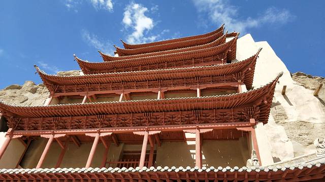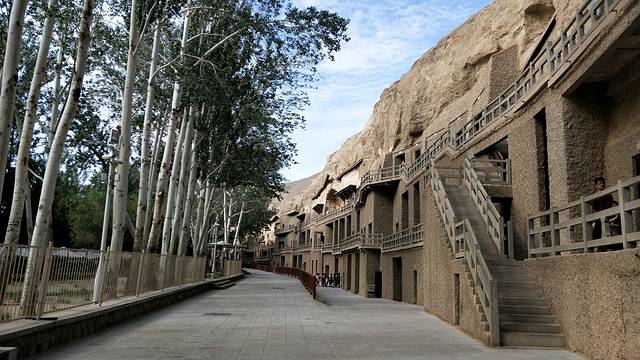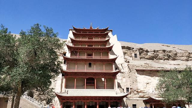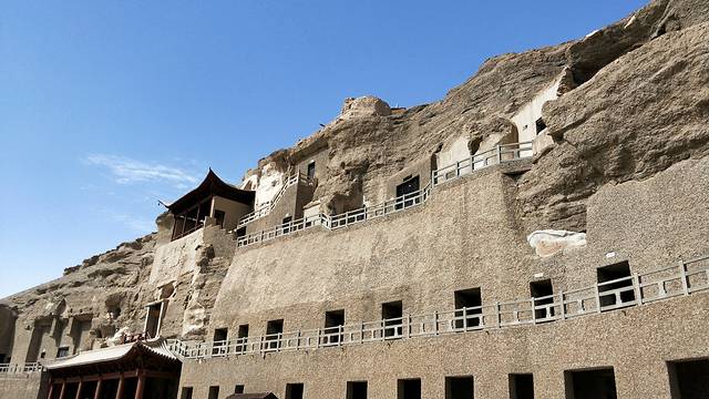 人类敦煌,千年莫高,早6点回酒店洗漱,出发莫高窟***提醒提醒:莫高窟的票一定要提前预定,提前预定的票是每人200元,带两场影片,一部介绍丝绸之路,一部是介绍莫高窟,很厉害的球形荧幕--当九层楼从荧幕底部起时,壮观的让你觉得什么都值了,然后坐大巴进入莫高窟内,配有解说员,可以讲解带领观看八个洞窟,最后就是看应急票的四个洞窟了:卧佛,最大佛,观音娘娘殿。走进莫高窟会让人感觉到严肃与尊敬,莫名的屏住呼吸的了解她。