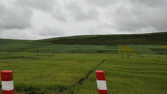70公里后祁连山大草原毫无预兆的出现在眼前,连绵不断。当然了,一直不断的雨水把我们憋在了车里,只看了草原的沿路景色,大草原的广阔,真叫漂亮,无界限。