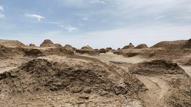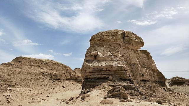 青海雅丹地貌魔鬼城,雅丹地貌形成的两个因素,一是发育这种地貌的地质基础,也就是必须要有湖泊沉积底层,二是外力侵蚀,就是沙漠中强大的定向风的吹蚀和流水的侵蚀。在长期的磨蚀作用下,小山包的下部遭受较强的剥蚀作用,并逐渐形成向里凹的形态。