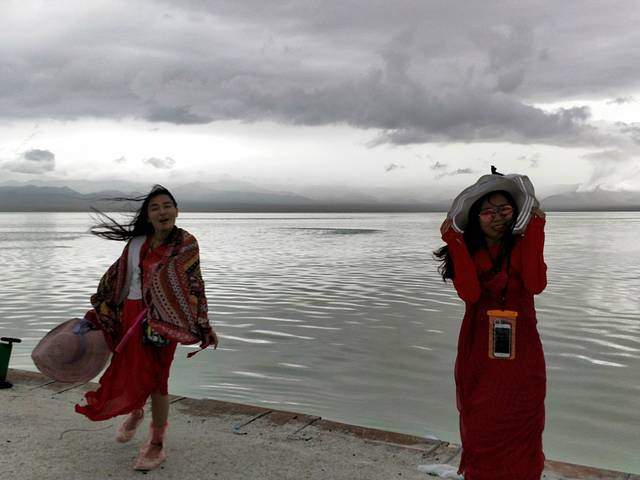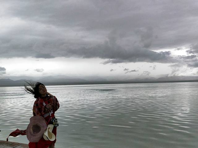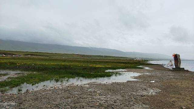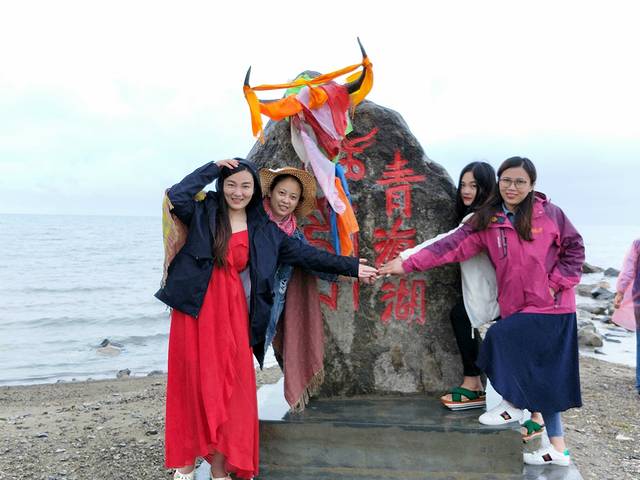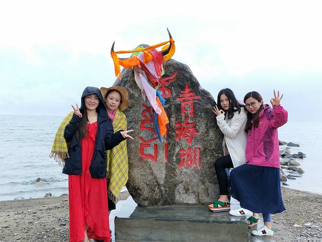 阴雨中的青海湖只够我们合个影,一大遗憾,让我觉得此行青海并不欢迎我们,连日阴雨,什么都没看到~