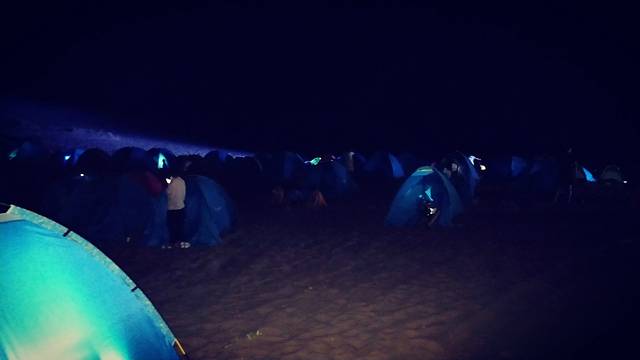 欢闹之后,一切都安静了。自己搭帐篷 埋沙,露营基本是午夜了,天空很高,夜晚的星空并没有我家乡的美,也没有我家乡的亮~