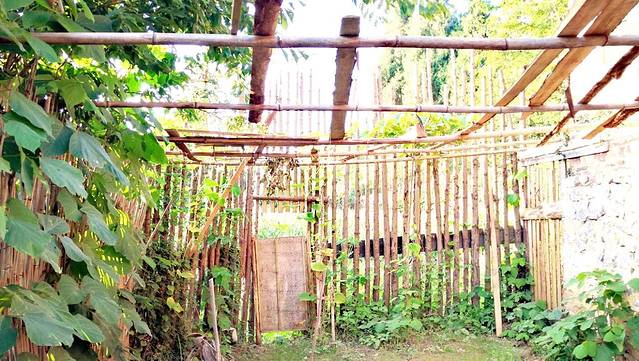 山居匠舍 当然不可无院,无有机蔬果,再待半月,南瓜葫芦足可避日。试种了美国巨型南瓜(直径一米以上),不知会否成功,成为一景?